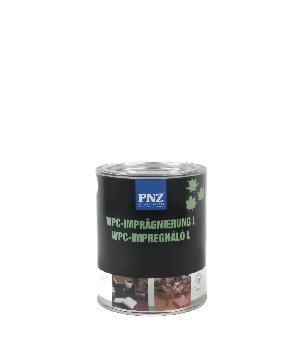Műszaki adatok és felhasználásPNZ WPC-Imprägnierung L – WPC Impregnáló olajTulajdonságokTermészetes növényi alapanyagokból készült ápoló olaj WPC (Wood-Plastic-Composite – fa-műanyag kompozit) teraszburkolatok, Resysta burkolatok és Polyrattan kerti bútorok kezelésére. Az olaj önmagában színtelen, de elmélyíti és visszaadja a megszürkült felületek eredeti színét. Hatására a felület nyitott pórusú marad, ugyanakkor időjárás- és UV-állóvá válik.Felhasználási területWPC teraszburkolatok, Resysta burkolatok és Polyrattan kerti bútorok ápolására és felújítására ajánlott.TanúsítványokA DIN 53160 szabványnak megfelelően nyál- és izzadtságálló. Az EN 71-3 szabványnak megfelelően gyermekjátékokra alkalmazható. Az IBR szerint alkalmazható a bioépítészetben.AlapfeltételekA felhordás és a száradás alatt a termék, a felület és a környezet hőmérséklete legyen +8 °C felett. A felület legyen tiszta, zsír- és pormentes. Használat előtt a terméket alaposan keverjük fel. Az eltérő gyártási számú termékeket használat előtt öntsük össze egy nagyobb edénybe, majd keverjük el.AlkalmazásA megszürkült, szennyezett felületet a bevonat felhordása előtt PNZ WPC-Reiniger – WPC Tisztítóval mossuk át, majd öblítés és teljes száradás után hordjuk fel a PNZ WPC Impregnálót. Felkenhető ecsettel, hengerrel vagy ronggyal. Két rétegben alkalmazzuk, 12 óra köztes száradási idővel. A köztes száradási időt akkor is várjuk ki, ha a felület látszólag már száraz. Nedves és hűvös időjárás esetén a száradás meghosszabbodik.Eszközök tisztításaA szerszámokat közvetlenül a használat után mossuk el lakkbenzinnel.Ápolás, karbantartásTeraszpadlón évente egy-két alkalommal javasolt PNZ WPC-Reiniger – WPC Tisztítóval átmosni, majd egy réteg PNZ WPC Impregnálóval felfrissíteni a járófelületet. Egyéb kültéri felületeken 1–2 évente ellenőrizzük a kopást, és a jobban kitett, kopottabb részeket kenjük át újra egy rétegben. A rendszeres karbantartás összességében kevesebb munkával folyamatosan szép felületet ad, ezért gazdaságosabb, mint a ritkán elvégzett teljes felújítás.Kiadósság10–20 m²/liter rétegenként. A száraz, kezeletlen felület többet vesz fel, a második vagy későbbi karbantartó réteg kevesebbet. Bordázott felületeknél vegyük figyelembe, hogy a tényleges felület a mért felület 1,5–2-szerese is lehet.TárolásHűvös, fagymentes helyen tárolandó. Kereskedelmi forgalomba hozható a gyártástól számított 5 éven belül. A maradékot töltsük át kisebb edénybe, és zárjuk le légmentesen. Így évekig eltartható, és alkalmas marad későbbi karbantartásokhoz, javításokhoz.ÖsszetételIzoalifátok, nemesített természetes olajok (szója-, napraforgó- és repceolaj ellenőrzött termelőktől), bogáncsolaj, mézga, cirbolyaolaj, ólommentes szárítóadalék, kobaltbisz (2-etilhexanoát).Biztonsági figyelmeztetésekErősen oxidáló anyagokkal reakcióba léphet. 67 °C fölé hevítve, szóráskor lobbanékony keveréket alkothat. A kémiai biztonságról szóló 2000. évi XXV. törvény alkalmazása szempontjából nem minősül veszélyes keveréknek, így biztonsági adatlap kiadása nem szükséges.FontosA termékről szóló információkat legjobb tudásunk és tapasztalataink alapján foglaltuk össze. Ennek ellenére minden felhasználás előtt végezzünk próbakezelést egy félreeső felületen, hogy lássuk a várható eredményt. Az anyagok fajtájától és aktuális állapotuktól függően eltérően reagálhatnak, a végső bevonat minősége pedig függ a felhordás módjától és a környezet jellemzőitől is.