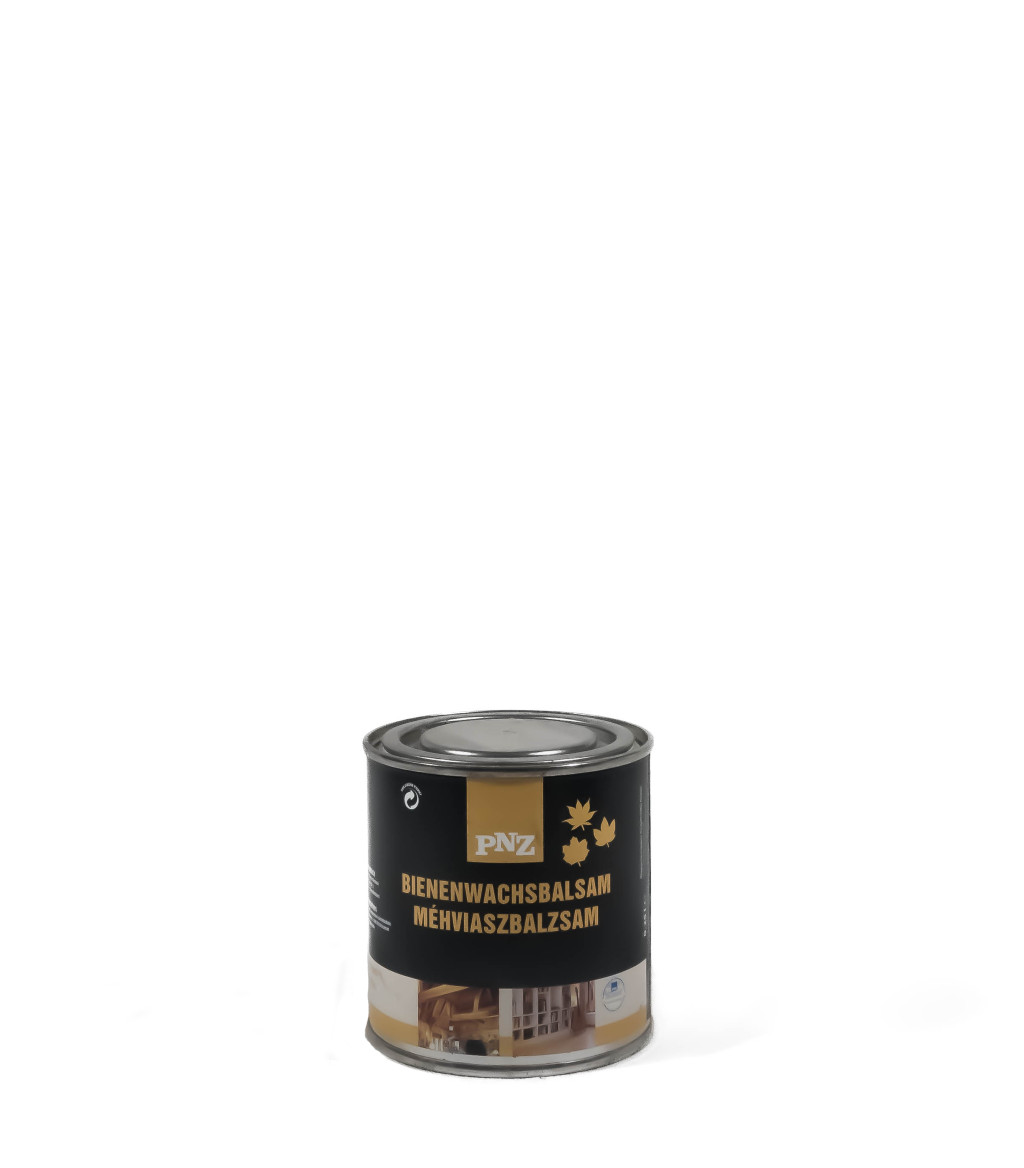 Műszaki adatok és felhasználásPNZ BIENENWACHSBALSAM – MéhviaszbalzsamTulajdonságokTermészetes méhviaszból készült, mézillatú bútorápoló szer selyemfényű fafelületek ápolására. Natúr fafelületek bevonására is alkalmas önálló felületkezelésként. Antisztatikus, portaszító hatású. Megtartja a fa páradiffúziós képességét, így a helyiség klímáját pozitívan befolyásolja. A megszáradt bevonatnak nincs utólagos kipárolgása. Polírozva fényes felületet ad. Könnyen bedolgozható, rövid idő múlva polírozható. A megszáradt bevonat megfelel a DIN 53 160 normának, nyál- és izzadtságálló, valamint az EN 71-3 szabványnak, ezért gyermekjátékokra is alkalmazható. Méreganyagot nem tartalmaz. Színtelen.Felhasználási területBeltéri fafedések, fa burkolatok, polcok, bútorok, parafa- és fatárgyak kezelésére ajánlott. Alkalmas antik fatárgyak, bútorok, képkeretek és faragványok védelmére, valamint favédő lazúrok, megfakult lakkok, pácolt és viaszolt felületek ápolására és felfrissítésére. Ezüst-, bronz- és rézfelületek kezelésére is alkalmazható az oxidáció megelőzésére.Nem ajánlottNedves helyiségekben – például fürdőszobában –, valamint erős igénybevételnek kitett felületeken – például ajtókon vagy konyhai munkalapokon – inkább az ellenállóbb PNZ Holz-Wachs W – Faviasz W, PNZ Hartwachs-Öl – Keményviasz-olaj vagy PNZ Arbeitsplatten-Öl – Munkalap olaj alkalmazása javasolt.AlkalmazásA felület legyen por- és szennyeződésmentes. A viaszt ecsettel vagy nem bolyhosodó kendővel egyenletesen, vékonyan hordjuk fel. 15–30 perc múlva a felesleget nem bolyhosodó kendővel le kell törölni. 3–4 óra múlva a felület fényesre polírozható. Amennyiben telítettebb felületet kívánunk, egy második réteget is felhordhatunk. A fa nedvességtartalma ne legyen 20%-nál magasabb. A felhordás és a száradás során a termék, a felület és a környezet hőmérséklete legyen +8 °C felett.KiadósságÁtlagosan 1 liter 15 m² felület egyszeri kezelésére elegendő. A tényleges kiadósság függ a felület csiszoltságától is.TisztításA szerszámokat közvetlenül a használat után lakkbenzinnel tisztítsa meg.ÖsszetevőkMéhviasz, izoalifátok, carnaubaviasz, földviasz, japánviasz, candelillaviasz, mikroviasz.TárolásHűvös, fagymentes helyen tárolandó. Kereskedelmi forgalomba hozható a gyártástól számított 5 évig. A maradékot töltse kisebb edénybe, és zárja le légmentesen. Így évekig felhasználható marad.Biztonsági előírásokErősen oxidáló anyagokkal reakcióba léphet. 67 °C fölé hevítve, szóráskor lobbanékony keveréket alkothat. A kémiai biztonságról szóló 2000. évi XXV. törvény alkalmazása szempontjából nem minősül veszélyes keveréknek, így biztonsági adatlap kiadása nem szükséges.FontosA termékről szóló információkat legjobb tudásunk és tapasztalataink alapján foglaltuk össze. Ennek ellenére minden felhasználás előtt végezzen próbakezelést egy félreeső felületen, hogy lássa a várható eredményt. A faanyagok fajtájától és aktuális állapotától függően eltérően reagálhatnak, a végső bevonat minősége pedig függ a felhordás módjától és a környezet jellemzőitől is.