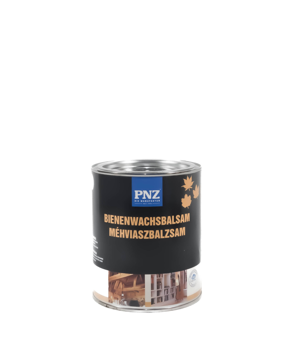 Műszaki adatok és felhasználásPNZ BIENENWACHSBALSAM – MéhviaszbalzsamTulajdonságokTermészetes méhviaszból készült, mézillatú bútorápoló szer selyemfényű fafelületek ápolására. Natúr fafelületek bevonására is alkalmas önálló felületkezelésként. Antisztatikus, portaszító hatású. Megtartja a fa páradiffúziós képességét, így a helyiség klímáját pozitívan befolyásolja. A megszáradt bevonatnak nincs utólagos kipárolgása. Polírozva fényes felületet ad. Könnyen bedolgozható, rövid idő múlva polírozható. A megszáradt bevonat megfelel a DIN 53 160 normának, nyál- és izzadtságálló, valamint az EN 71-3 szabványnak, ezért gyermekjátékokra is alkalmazható. Méreganyagot nem tartalmaz. Színtelen.Felhasználási területBeltéri fafedések, fa burkolatok, polcok, bútorok, parafa- és fatárgyak kezelésére ajánlott. Alkalmas antik fatárgyak, bútorok, képkeretek és faragványok védelmére, valamint favédő lazúrok, megfakult lakkok, pácolt és viaszolt felületek ápolására és felfrissítésére. Ezüst-, bronz- és rézfelületek kezelésére is alkalmazható az oxidáció megelőzésére.Nem ajánlottNedves helyiségekben – például fürdőszobában –, valamint erős igénybevételnek kitett felületeken – például ajtókon vagy konyhai munkalapokon – inkább az ellenállóbb PNZ Holz-Wachs W – Faviasz W, PNZ Hartwachs-Öl – Keményviasz-olaj vagy PNZ Arbeitsplatten-Öl – Munkalap olaj alkalmazása javasolt.AlkalmazásA felület legyen por- és szennyeződésmentes. A viaszt ecsettel vagy nem bolyhosodó kendővel egyenletesen, vékonyan hordjuk fel. 15–30 perc múlva a felesleget nem bolyhosodó kendővel le kell törölni. 3–4 óra múlva a felület fényesre polírozható. Amennyiben telítettebb felületet kívánunk, egy második réteget is felhordhatunk. A fa nedvességtartalma ne legyen 20%-nál magasabb. A felhordás és a száradás során a termék, a felület és a környezet hőmérséklete legyen +8 °C felett.KiadósságÁtlagosan 1 liter 15 m² felület egyszeri kezelésére elegendő. A tényleges kiadósság függ a felület csiszoltságától is.TisztításA szerszámokat közvetlenül a használat után lakkbenzinnel tisztítsa meg.ÖsszetevőkMéhviasz, izoalifátok, carnaubaviasz, földviasz, japánviasz, candelillaviasz, mikroviasz.TárolásHűvös, fagymentes helyen tárolandó. Kereskedelmi forgalomba hozható a gyártástól számított 5 évig. A maradékot töltse kisebb edénybe, és zárja le légmentesen. Így évekig felhasználható marad.Biztonsági előírásokErősen oxidáló anyagokkal reakcióba léphet. 67 °C fölé hevítve, szóráskor lobbanékony keveréket alkothat. A kémiai biztonságról szóló 2000. évi XXV. törvény alkalmazása szempontjából nem minősül veszélyes keveréknek, így biztonsági adatlap kiadása nem szükséges.FontosA termékről szóló információkat legjobb tudásunk és tapasztalataink alapján foglaltuk össze. Ennek ellenére minden felhasználás előtt végezzen próbakezelést egy félreeső felületen, hogy lássa a várható eredményt. A faanyagok fajtájától és aktuális állapotától függően eltérően reagálhatnak, a végső bevonat minősége pedig függ a felhordás módjától és a környezet jellemzőitől is.