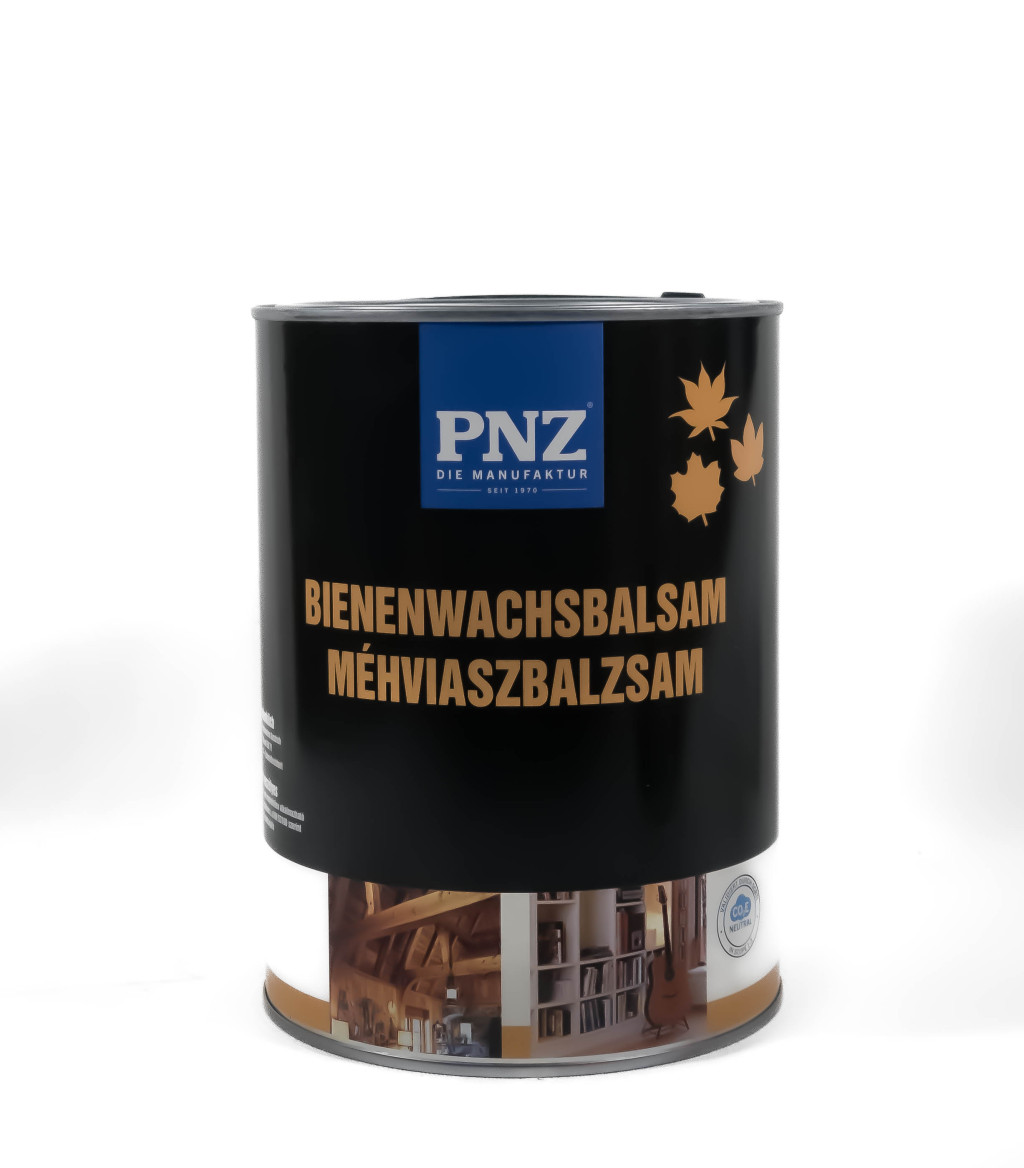 Műszaki adatok és felhasználásPNZ BIENENWACHSBALSAM – MéhviaszbalzsamTulajdonságokTermészetes méhviaszból készült, mézillatú bútorápoló szer selyemfényű fafelületek ápolására. Natúr fafelületek bevonására is alkalmas önálló felületkezelésként. Antisztatikus, portaszító hatású. Megtartja a fa páradiffúziós képességét, így a helyiség klímáját pozitívan befolyásolja. A megszáradt bevonatnak nincs utólagos kipárolgása. Polírozva fényes felületet ad. Könnyen bedolgozható, rövid idő múlva polírozható. A megszáradt bevonat megfelel a DIN 53 160 normának, nyál- és izzadtságálló, valamint az EN 71-3 szabványnak, ezért gyermekjátékokra is alkalmazható. Méreganyagot nem tartalmaz. Színtelen.Felhasználási területBeltéri fafedések, fa burkolatok, polcok, bútorok, parafa- és fatárgyak kezelésére ajánlott. Alkalmas antik fatárgyak, bútorok, képkeretek és faragványok védelmére, valamint favédő lazúrok, megfakult lakkok, pácolt és viaszolt felületek ápolására és felfrissítésére. Ezüst-, bronz- és rézfelületek kezelésére is alkalmazható az oxidáció megelőzésére.Nem ajánlottNedves helyiségekben – például fürdőszobában –, valamint erős igénybevételnek kitett felületeken – például ajtókon vagy konyhai munkalapokon – inkább az ellenállóbb PNZ Holz-Wachs W – Faviasz W, PNZ Hartwachs-Öl – Keményviasz-olaj vagy PNZ Arbeitsplatten-Öl – Munkalap olaj alkalmazása javasolt.AlkalmazásA felület legyen por- és szennyeződésmentes. A viaszt ecsettel vagy nem bolyhosodó kendővel egyenletesen, vékonyan hordjuk fel. 15–30 perc múlva a felesleget nem bolyhosodó kendővel le kell törölni. 3–4 óra múlva a felület fényesre polírozható. Amennyiben telítettebb felületet kívánunk, egy második réteget is felhordhatunk. A fa nedvességtartalma ne legyen 20%-nál magasabb. A felhordás és a száradás során a termék, a felület és a környezet hőmérséklete legyen +8 °C felett.KiadósságÁtlagosan 1 liter 15 m² felület egyszeri kezelésére elegendő. A tényleges kiadósság függ a felület csiszoltságától is.TisztításA szerszámokat közvetlenül a használat után lakkbenzinnel tisztítsa meg.ÖsszetevőkMéhviasz, izoalifátok, carnaubaviasz, földviasz, japánviasz, candelillaviasz, mikroviasz.TárolásHűvös, fagymentes helyen tárolandó. Kereskedelmi forgalomba hozható a gyártástól számított 5 évig. A maradékot töltse kisebb edénybe, és zárja le légmentesen. Így évekig felhasználható marad.Biztonsági előírásokErősen oxidáló anyagokkal reakcióba léphet. 67 °C fölé hevítve, szóráskor lobbanékony keveréket alkothat. A kémiai biztonságról szóló 2000. évi XXV. törvény alkalmazása szempontjából nem minősül veszélyes keveréknek, így biztonsági adatlap kiadása nem szükséges.FontosA termékről szóló információkat legjobb tudásunk és tapasztalataink alapján foglaltuk össze. Ennek ellenére minden felhasználás előtt végezzen próbakezelést egy félreeső felületen, hogy lássa a várható eredményt. A faanyagok fajtájától és aktuális állapotától függően eltérően reagálhatnak, a végső bevonat minősége pedig függ a felhordás módjától és a környezet jellemzőitől is.